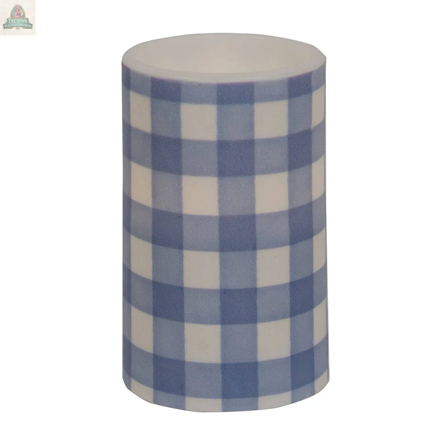 One of the best aspects of the Blue Gingham Check Timer Pillar is that it is flameless. Unlike traditional candles, it eliminates the risk of fire, making it safe around children and pets. It provides the warm glow of a candle without the worry of drips or smoke. Therefore, you can safely enjoy its ambiance anytime, anywhere in your home.